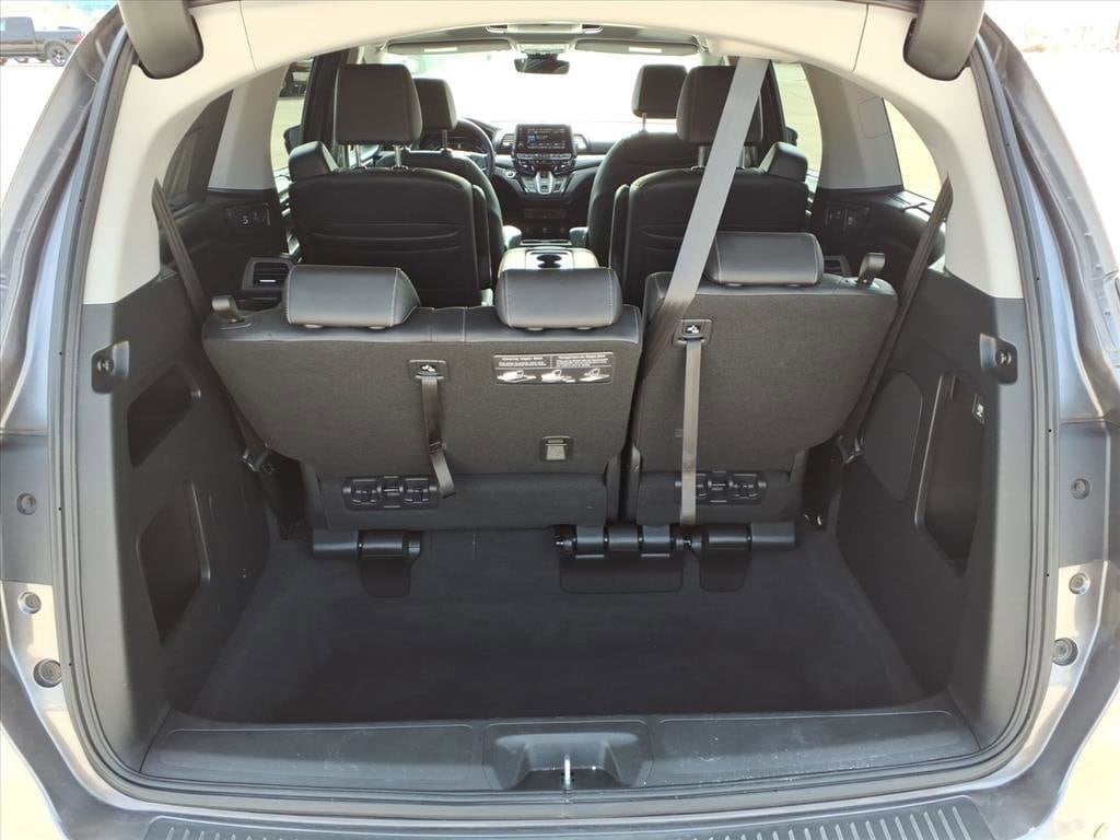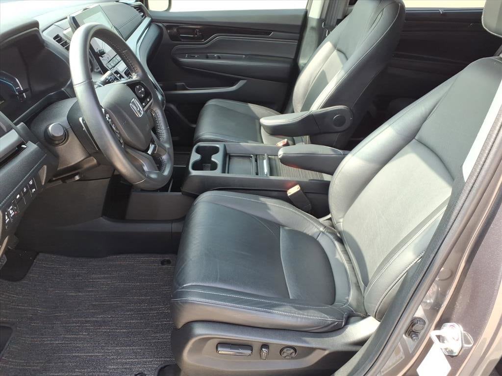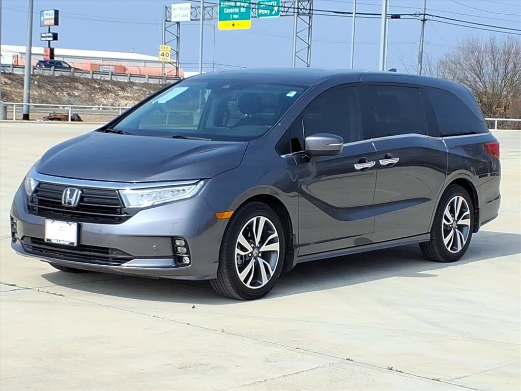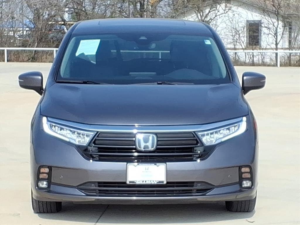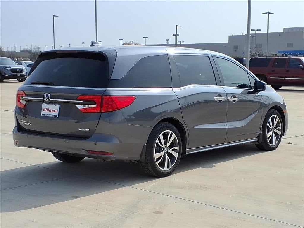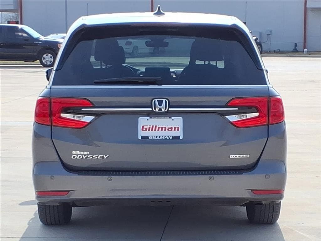 Gillman's Lifetime Engine Warranty lasts as long as you own your vehicle - free with the Gillman Pre-Owned Promise. If the vehicle isn't right for you, return it in purchase condition within 2 days or 200 miles as part of our Happy-Driving Guarantee. (Valid on vehicles under 90,000 miles and less than 7 years old). Upgrade your family's ride with this sleek gray 2023 Honda Odyssey Touring! Enjoy the perfect blend of comfort, technology, and versatility in this premium minivan, featuring leather-trimmed upholstery, heated front seats, and a spacious interior for all passengers. Stay connected with Apple CarPlay, Android Auto, and HondaLink smart device app compatibility. The advanced 10.2-inch rear video monitor, Blu-Ray/DVD player, and wireless headphones keep everyone entertained on long trips. Safety is top-notch with adaptive cruise control, lane keeping assist, blind spot monitoring, rear cross traffic alert, and front automatic emergency braking. Enjoy added convenience from the power sliding side doors, hands-free power liftgate, remote engine start, and tri-zone automatic climate control. With a power moonroof, rearview and multi-view cameras, and integrated navigation, this Odyssey Touring checks every box for families on the go. See it today and experience the comfort, safety, and tech you deserve. All vehicles subject to prior sale. We are not responsible for typographical errors and may change information without notice. Photos may not depict the actual vehicle. Tax, title, and license fees not included. Dealer Discount available to all buyers.Vehicles purchased from Gillman Automotive Group include a Bring It Back Guarantee: return the vehicle in purchase condition within two days or 200 miles. New current-model-year vehicles and qualifying pre-owned vehicles (under 90,000 miles and less than 7 years old) are eligible. Guarantee is non-transferable and has no cash value. Lifetime Warranty available on select pre-owned vehicles. See dealer for details; restrictions may apply.Certified Pre-Owned