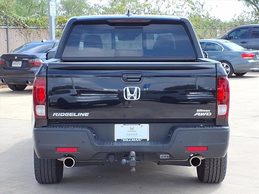 Gillman's Lifetime Engine Warranty lasts as long as you own your vehicle - free with the Gillman Pre-Owned Promise. If the vehicle isn't right for you, return it in purchase condition within 2 days or 200 miles as part of our Happy-Driving Guarantee. (Valid on vehicles under 90,000 miles and less than 7 years old). Experience premium comfort and rugged capability with this 2023 Honda Ridgeline AWD Black Edition Crew Cab. Powered by a 3.5L V6 engine and featuring a 9-speed automatic transmission, this pickup balances smooth performance with impressive versatility. The Black Edition styling adds a bold, distinctive look with black accents throughout. Enjoy advanced safety features like Front Automatic Emergency Braking, Lane Keeping Assist, Adaptive Cruise Control, and Blind Spot Monitoring. Inside, you'll find luxurious leather-trimmed seats, heated front seats, a heated steering wheel, and a power moonroof. Stay connected with an 8-inch touchscreen, Apple CarPlay, Android Auto, and HondaLink compatibility. Convenience features include remote engine start, a dual-action tailgate, in-bed storage, and a premium 540-watt audio system with bed speakers-perfect for tailgating or weekend adventures. The multi-view rear camera, parking sensors, and rear cross-traffic alert make parking and maneuvering a breeze. Whether you need a capable workhorse or a family-friendly adventure truck, this Ridgeline Black Edition delivers style, comfort, and advanced technology. All vehicles subject to prior sale. We are not responsible for typographical errors and may change information without notice. Photos may not depict the actual vehicle. Tax, title, and license fees not included. Dealer Discount available to all buyers.Vehicles purchased from Gillman Automotive Group include a Bring It Back Guarantee: return the vehicle in purchase condition within two days or 200 miles. New current-model-year vehicles and qualifying pre-owned vehicles (under 90,000 miles and less than 7 years old) are eligible. Guarantee is non-transferable and has no cash value. Lifetime Warranty available on select pre-owned vehicles. See dealer for details; restrictions may apply.Certified Pre-Owned