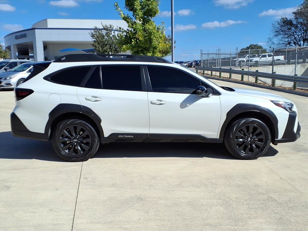 2023 Subaru Outback Experience adventure and comfort in this 2023 Subaru Outback AWD Onyx Edition XT. Finished in classic white, this versatile crossover features Subaru's renowned full-time all-wheel drive and a turbocharged 2.4L H4 engine for spirited performance. The Onyx XT trim includes premium features like a panoramic power moonroof, heated front and rear seats, and a hands-free power liftgate for ultimate convenience. Stay connected with a massive 11.6-inch STARLINK touchscreen, wireless Apple CarPlay and Android Auto, and integrated TomTom navigation. Safety comes standard with Subaru EyeSight, adaptive cruise control with lane centering, front automatic emergency braking, blind spot detection, rear cross-traffic alert, and a rearview camera with washer. Enjoy the stylish black alloy wheels, contrast-stitched upholstery, and durable all-weather floor liners. With its spacious interior, advanced tech, and rugged capability, this Outback Onyx Edition XT is ready for every journey.