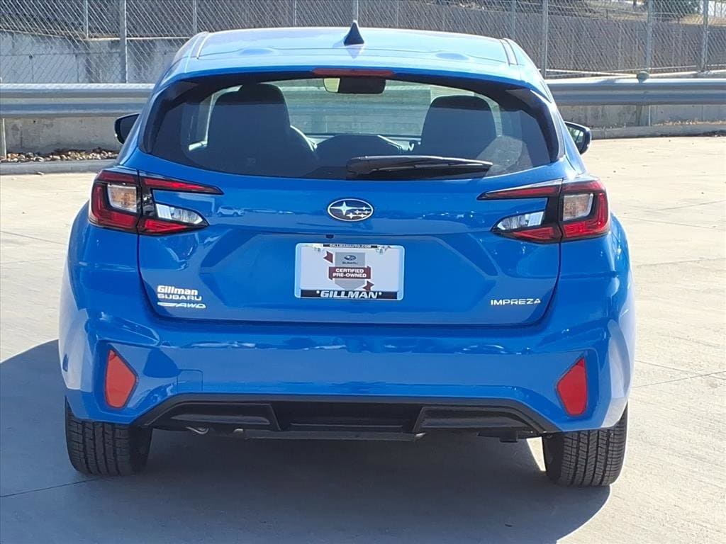 Gillman's Lifetime Engine Warranty lasts as long as you own your vehicle - free with the Gillman Pre-Owned Promise. If the vehicle isn't right for you, return it in purchase condition within 2 days or 200 miles as part of our Happy-Driving Guarantee. (Valid on vehicles under 90,000 miles and less than 7 years old). Drive into the future with this stunning Lt. Blue 2025 Subaru Impreza Sport AWD, boasting just 1 mile on the odometer. Experience performance and confidence with Subaru's legendary Symmetrical All-Wheel Drive, powered by a fuel-efficient 2.0L H4 engine paired to a smooth 8-speed Lineartronic CVT. Enjoy a suite of advanced safety features, including EyeSight Driver Assist with Adaptive Cruise Control, Lane Keep Assist, and Pre-Collision Braking. Stay comfortable year-round with the All-Weather Package: heated front seats, heated mirrors, and windshield wiper de-icer. The sleek exterior features 18" machined alloy wheels, LED headlights, and a power moonroof. Inside, the 11.6-inch touchscreen supports Apple CarPlay/Android Auto, while dual-zone automatic climate control and premium cloth seating keep every drive enjoyable. Take advantage of Blind Spot Detection, Rear Cross Traffic Alert, and a rearview camera for added peace of mind. With just 1 mile and backed by Subaru's robust warranty, this Impreza Sport is ready to hit the road. Contact us today for a test drive and discover why Subaru remains the trusted choice for adventure and safety. All vehicles subject to prior sale. We are not responsible for typographical errors and may change information without notice. Photos may not depict the actual vehicle. Tax, title, and license fees not included. Dealer Discount available to all buyers.Vehicles purchased from Gillman Automotive Group include a Bring It Back Guarantee: return the vehicle in purchase condition within two days or 200 miles. New current-model-year vehicles and qualifying pre-owned vehicles (under 90,000 miles and less than 7 years old) are eligible. Guarantee is non-transferable and has no cash value. Lifetime Warranty available on select pre-owned vehicles. See dealer for details; restrictions may apply.Certified Pre-Owned