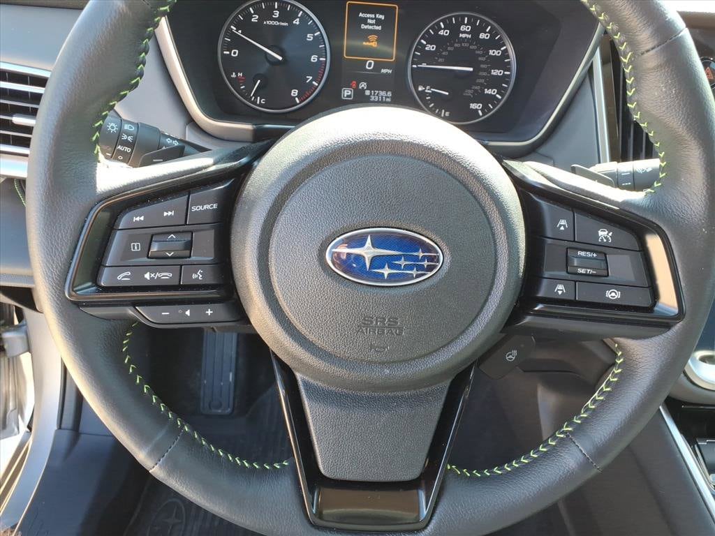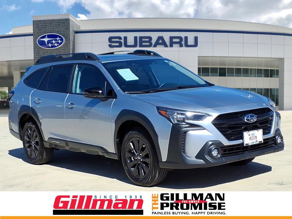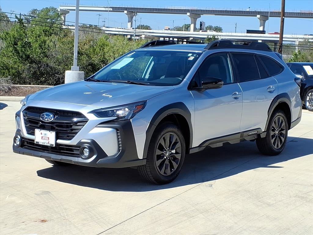 2025 Subaru Outback Experience adventure and comfort with this Silver 2025 Subaru Outback AWD Onyx Edition, boasting only 3,310 miles! This well-equipped crossover features Subaru's legendary all-wheel drive, 2.5L engine, and 8-speed shiftable CVT for confident handling in any weather. Enjoy the luxurious heated seats, heated steering wheel, and power moonroof. Stay connected with an impressive 11.6-inch touchscreen, Harman/Kardon premium audio, wireless Apple CarPlay & Android Auto, and Wi-Fi hotspot compatibility. Safety is top-notch with adaptive cruise control, blind spot detection, front and rear automatic emergency braking, pedestrian detection, and lane centering. You'll appreciate added convenience from the power liftgate, all-weather floor liners, and versatile cargo space with a rubber/vinyl cargo area mat. This Outback Onyx Edition also features stylish aluminum alloy wheels, black roof rails, and a sleek interior with contrast stitching. Ready for your next journey-don't miss this nearly-new Subaru Outback with all the latest tech and safety features!
